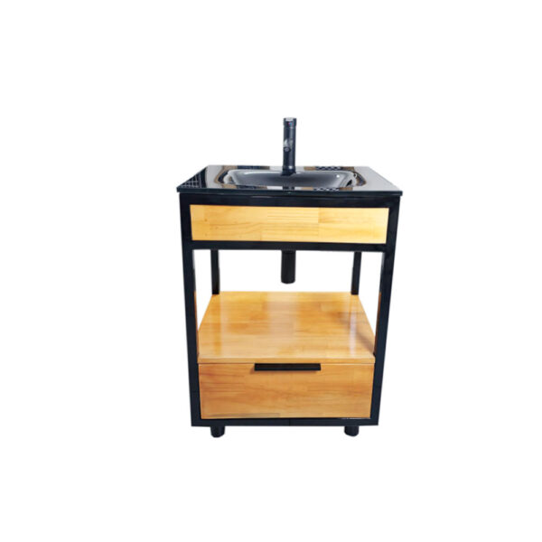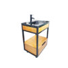 Vanitorio Rustico Fierro-Pino Finger y Vidrio 60x47x96 cms + Griferia