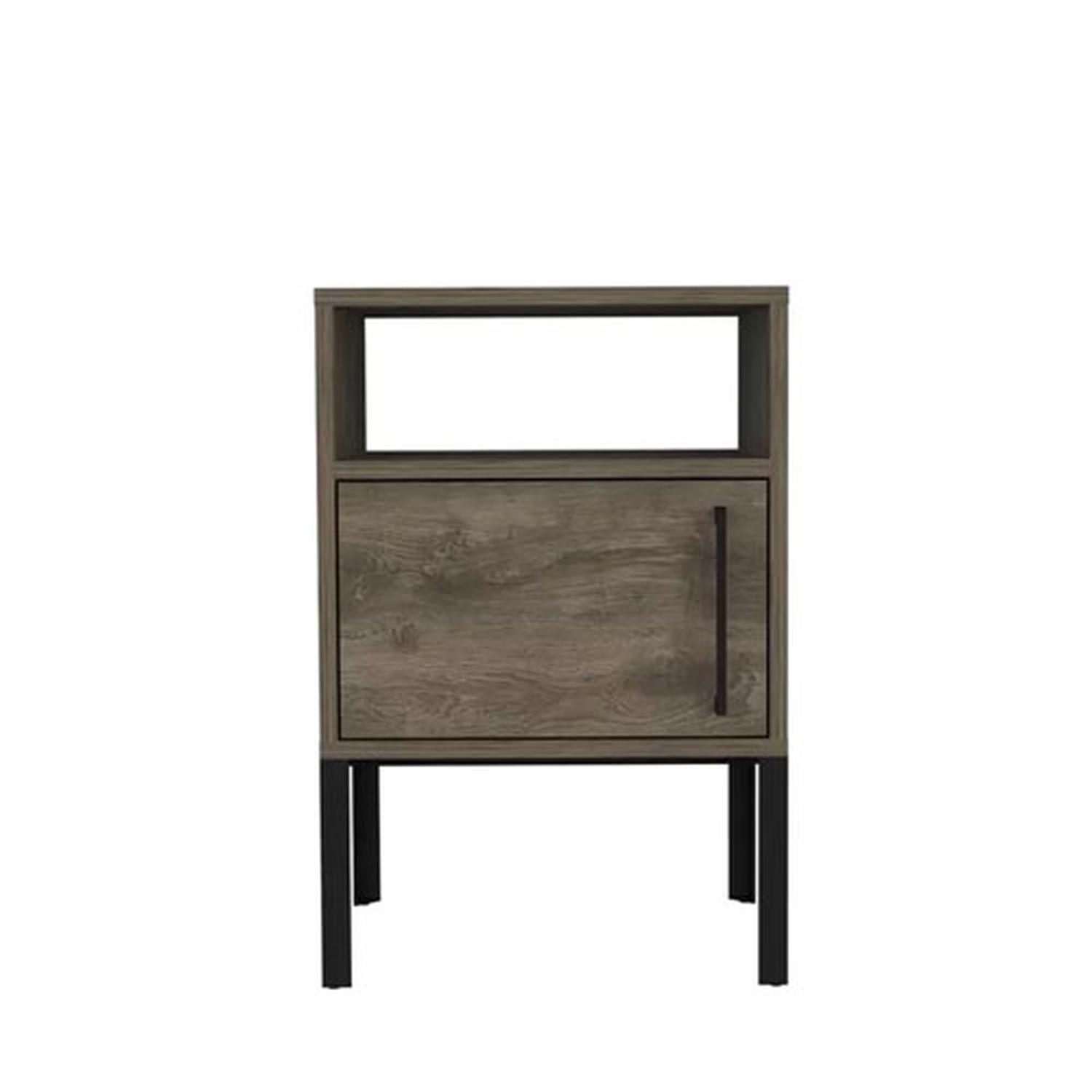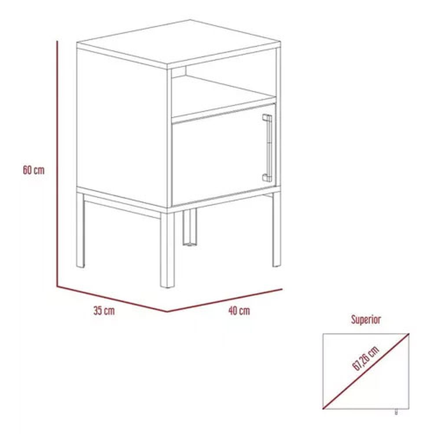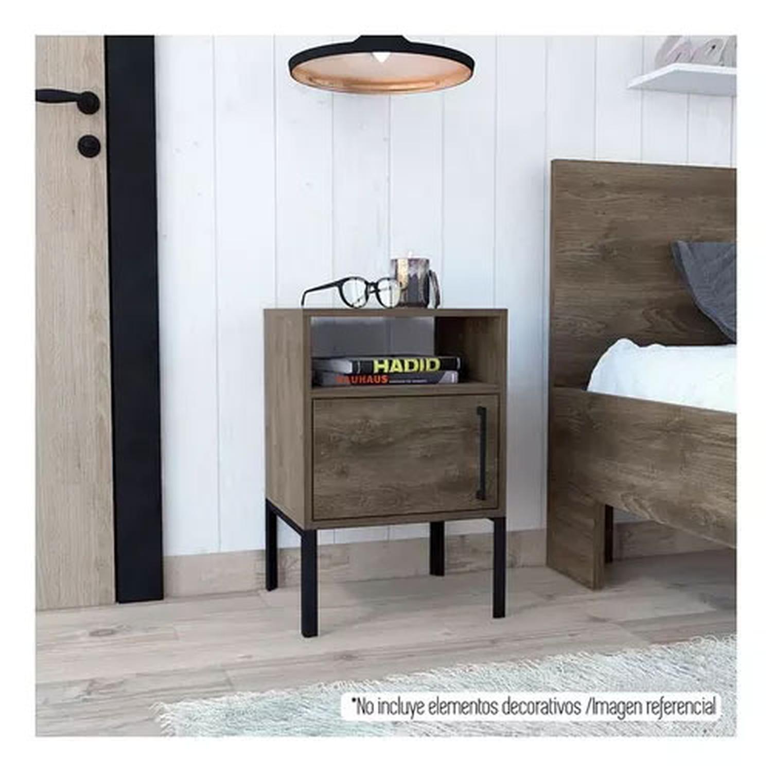 Velador, con 1 puerta batiente, manija y patas metálicas.