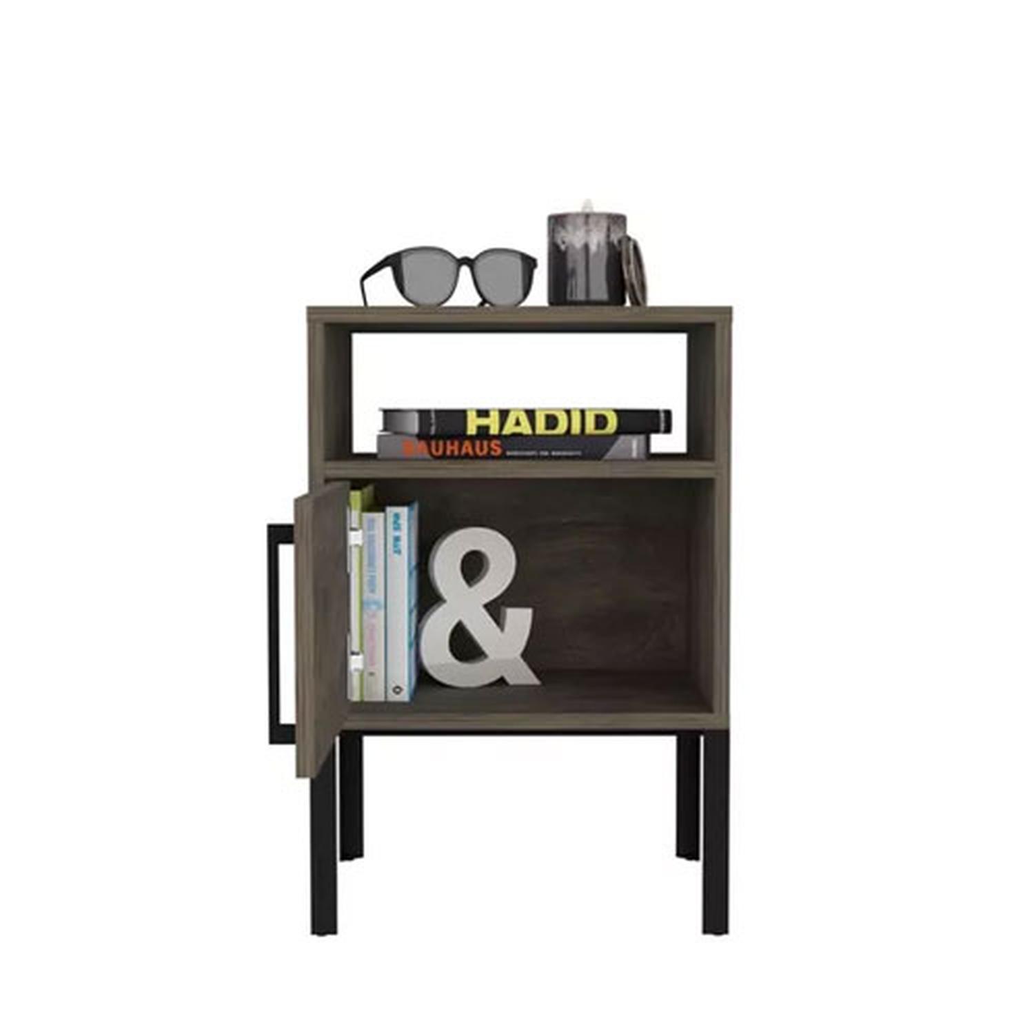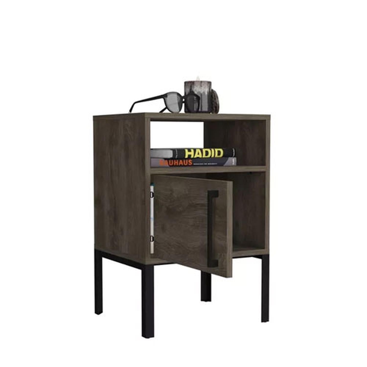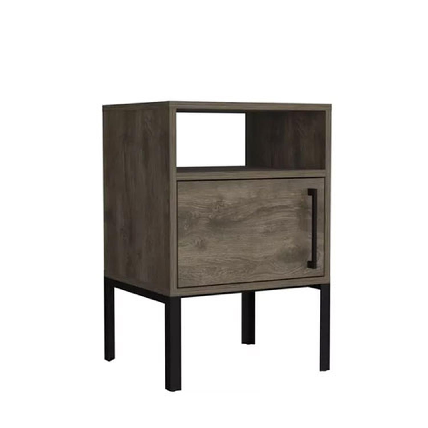 Velador, con 1 puerta batiente, manija y patas metálicas.